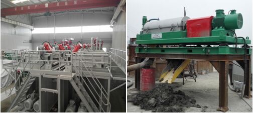 - 3、卧螺岩屑泥浆离心机下端的输送泵从过度罐中吸取泥浆供给到卧螺岩屑离心机进行处理。
